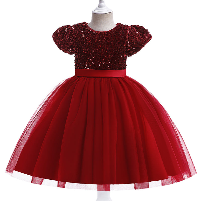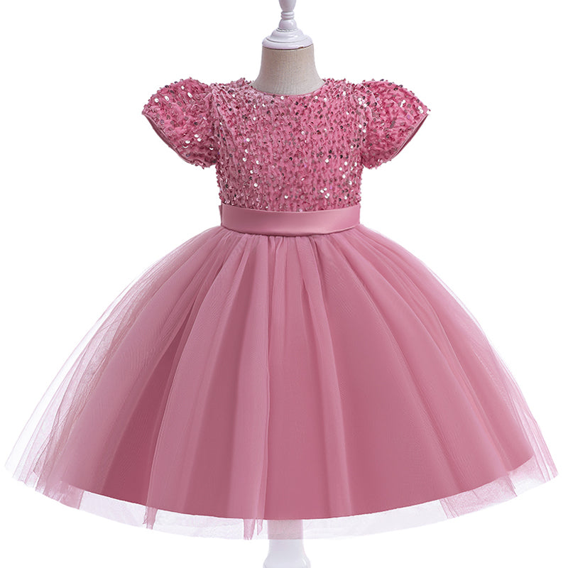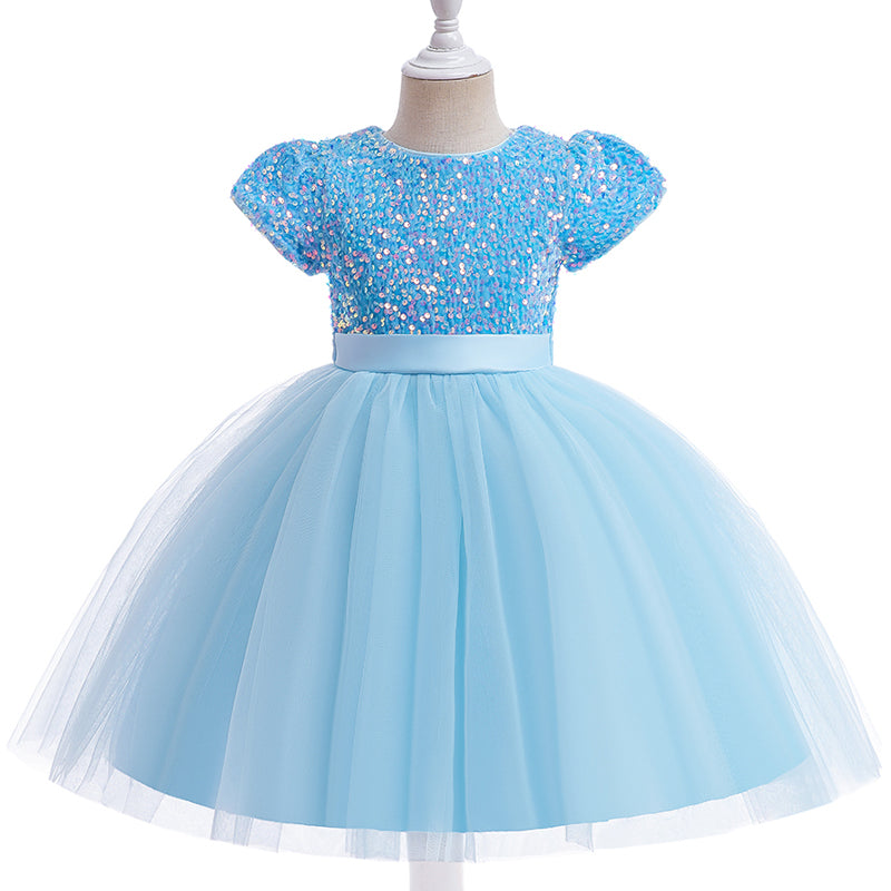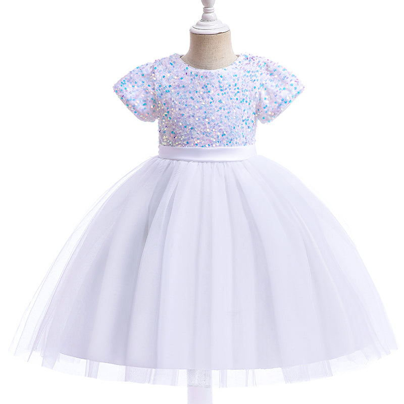 Pageant Sequin Party Dress For Girls Children Costumes Short Sleeve Girls Princess Dresses Elegant Wedding Vestidos 3-10 Years