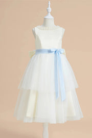 Wedding Flower Girl Dress A-Line Cute Beaded Crew Neck Tiered Tulle Elegant Girl Communion Formal Dress Princess Dress
