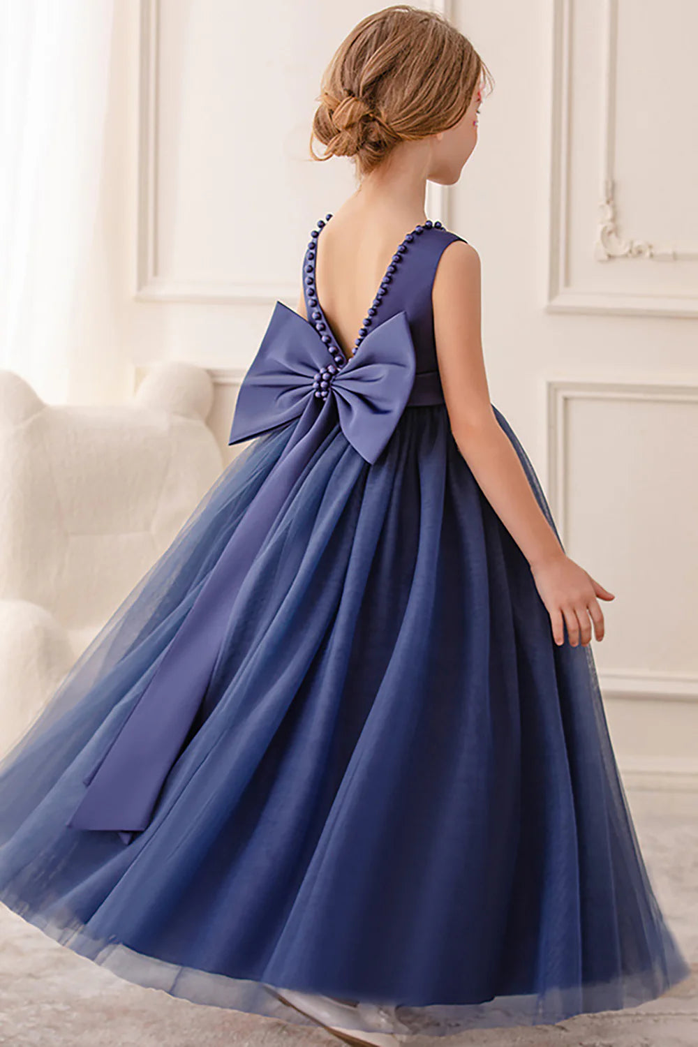 White A Line Sleeveless Bowknot Flower Girl Dress With Pearls