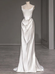 Simple A-line White Satin Straps Wedding Dress
