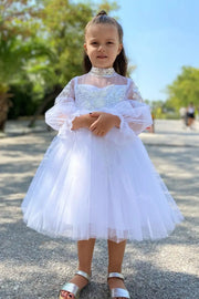 Wedding Flower Girl Dress Exquisite A Line High Neck with Puff Long Sleeves Sparkle Girl Communion Formal Dress Princess Dress